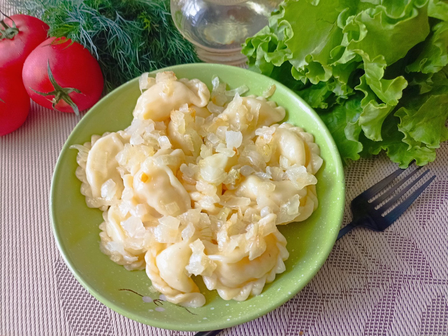 Подавайте вареники на пару горячими, щедро сдобрив их жареным луком и холодной сметаной. Классическая подача также включает в себя порубленный укроп и кусочек сливочного масла. Для любителей острого — порция маринованных овощей или хрустящий шпик.