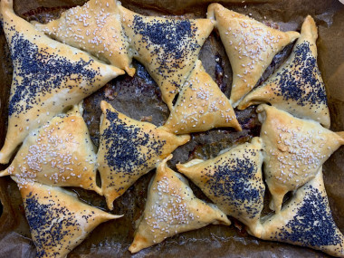 Самса с курицей из слоёного теста готова. Приятного аппетита!