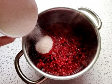 Поставьте кастрюлю на огонь и доведите до кипения. Небольшими порциями, постоянно помешивая, добавьте сахарный песок. Держите кастрюлю на слабом огне, сахар должен полностью раствориться. Доведите до кипения и варите в течение 5 минут, после чего разлейте варенье в стерильные баночки и закройте крышками. Хранить варенье нужно в прохладном месте.
