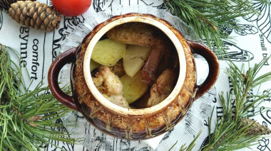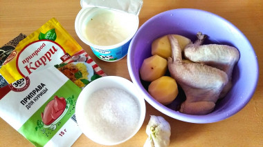 Понравился рецепт курица с картошкой в сметане в духовке. Готовлю сегодня на ужин. У меня есть куриные крылышки, картошка, немного сметаны и специи. Также приготовила пару долек чеснока. Чищу и режу картошку, крылышки делю пополам. В отдельной посуде смешиваю сметану и специи, у меня это карри, приправа для курицы и черный молотый перец, добавляю мелко порезанный чеснок, половину смешиваю с картошкой, половину с крылышками. Запекать буду в горшочке, кладу туда сначала картошку, а сверху куриные крылышки, наливаю чуть-чуть воды, буквально пару ложек, чтобы картошка не прилипла ко дну горшочка, и отправляю в духовку. Прикрою крышечкой от горшочка и включаю небольшой огонь. Через 50 минут по всей квартире очень вкусно пахло, курица с картошкой были готовы, картошка стала мягкая и нежная, очень сочная за счет соуса, а крылышки чуть зарумянились. Ужин был замечательный! Благодарю за рецепт.