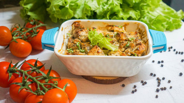 Блюдо получилось очень вкусным, а порционная подача в формочках придала блюду красоты и эстетичности.