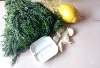 Лимон тщательно вымойте в горячей воде, выжмите сок и влейте его в миску с укропом. Все хорошо перемешайте.