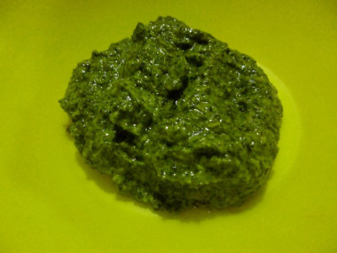 Пробейте зеленую массу погружным блендером до желаемой консистенции. Его можно сделать как однородный соус, так и с мелкими фрагментами зелени.