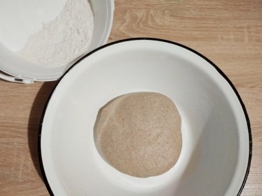 Приготовьте опару. Как сделать опару? Возьмите другую миску и насыпьте в нее две столовые ложки пшеничной муки. Возьмите их из общего количества. Добавьте сахар и сухие дрожжи. Перемешайте сухие ингредиенты. Влейте в них половину нормы теплой воды. Хорошо перемешайте опару, чтобы разбить все комочки. Важно использовать именно теплую воду, температурой около 38 градусов. Более горячая вода убьет живые организмы, которыми являются дрожжи.
