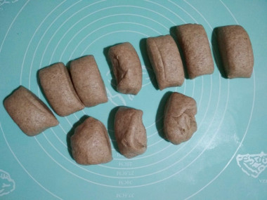 Разделите его на равные части. У меня получилось 8 кусочков. Из каждого кусочка сформируйте круглую булочку. Для этого защипните края к центру, как бы собирая узелок, затем переверните заготовку и покатайте ее на доске, чтобы она округлилась.