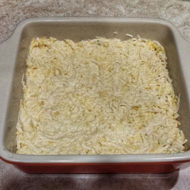 Пирог-запеканка из тертого картофеля с сыром и чесноком
