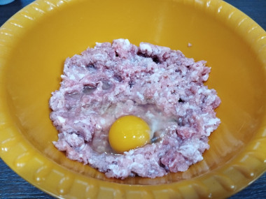 Вбейте в фарш одно куриное яйцо. Посолите и поперчите по вкусу. Хорошо перемешайте фарш до однородного состояния ложкой или рукой.