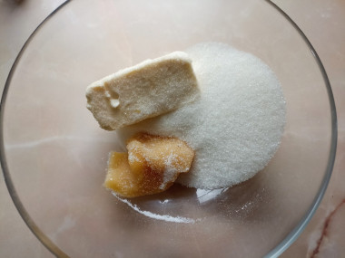 В огнеупорную миску или в кастрюльку выложите сливочное масло, мёд и сахар.