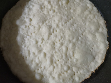 Переверните корж лопаткой на вторую сторону и обжаривайте его еще минуту.