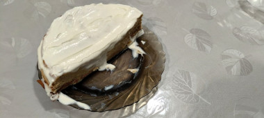 Так как при переворачивании коржи рассыпались, я их просто обмакивала в крем и в чашку под пресс.