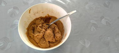Тщательно перемешайте массу и оставьте минут на 5. За это время смесь должна слегка вспениться и она станет светлее.