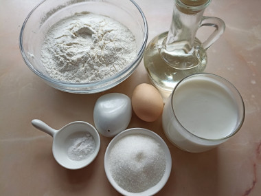 Как сделать пышные оладьи на скисшем молоке без дрожжей? Подготовьте продукты. Самые вкусные оладьи получатся на домашней простокваше. Простой рецепт ее приготовления вы найдете в конце рецепта. Количество сахара и соли регулируйте по своему вкусу. Муки у вас может уйти больше или меньше указанного количества. Масло для жарки возьмите рафинированное, без запаха.