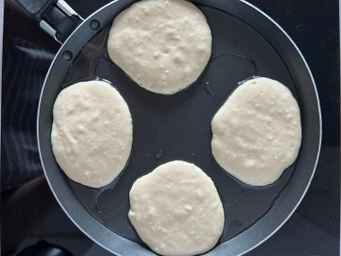 Готовые оладьи снимите на тарелку. Перед следующей порцией влейте еще немного масла — это последний секрет пышных оладий.