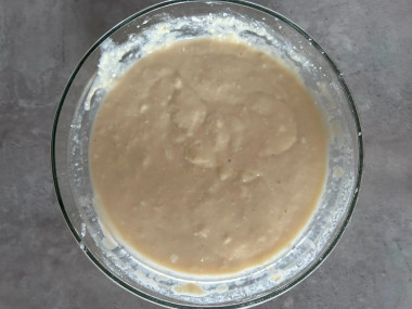 В отдельной посуде объедините просеянную муку с содой и солью. Перемешайте. Всыпьте муку порциями в тесто, хорошо размешивая его после каждого добавления. У вас в итоге должно получиться довольно густое однородное тесто, которое очень медленно растекается. У меня ушла не вся мука, вы же смотрите по своему тесту. Возможно, придется добавить. О муке и её свойствах, а также нюансах работы с содой подробнее читайте в отдельных статьях, ссылки в конце рецепта.