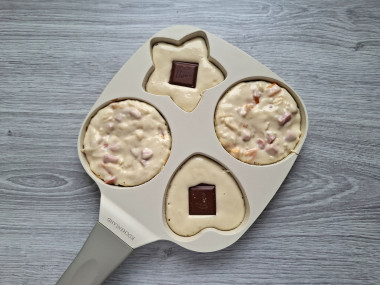 Налейте сверху еще немного теста, чтобы закрыть шоколад.