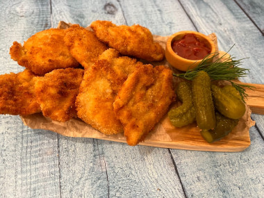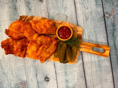 Мясо вышло очень нежное и сочное. Как контраст - хрустящая панировка. Вкусно очень!