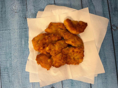 Готовые наггетсы переложите на салфетки, чтобы убрать излишки жира.