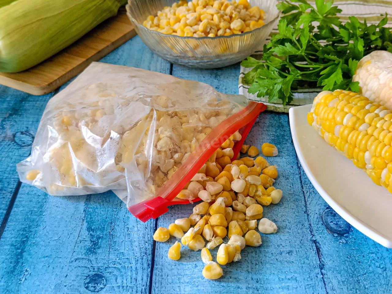 Упаковка: Вместо пищевой пленки для початков можно использовать вакуумные пакеты или специальные пакеты для заморозки. Зерна отлично хранятся в пластиковых контейнерах.