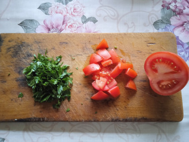 Помидоры выбирайте сочные, но плотные. Мягкие плоды плохо держат форму, в процессе нарезки и приготовления они расползутся в бесформенную массу и испортят внешний вид блюда.