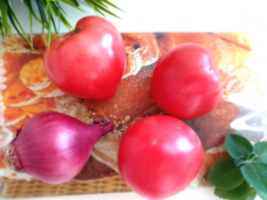 Как сделать узбекский салат Ачик Чучук к плову из помидоров и лука? Очень легко и быстро! Подготовьте все необходимые продукты. Томаты выберите сочные, мясистые. Лучше использовать сезонные овощи, тогда готовое блюдо получится особо вкусным. Лук возьмите красный, он мягче на вкус. Но так же можно использовать обычный репчатый. По желанию его можно промыть в холодной воде, чтобы убрать горечь.