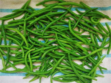 Рецепт "спаржевая фасоль заморозка на зиму" оказался для меня очень полезен, так как сейчас у нас самый разгар зеленого горошка и стручковой фасоли. Самое время делать заготовки на зиму. У стручков фасоли я отрезала не только черешки, но и кончики с противоположной стороны. Кипятила фасоль не более минуты - стручки молодые, они быстро стали более мягкими и яркими по цвету. Затем просушила на полотенце и порезала на кусочки. Замораживала при температуре -19 градусов около 10 минут на подносе, затем переложила в пакет и отправила в ящик морозильной камеры на хранение.