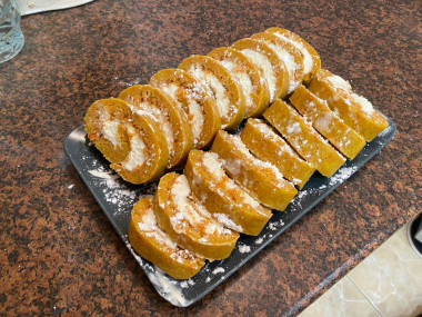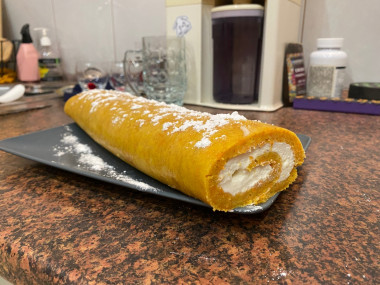 Удивительно нежный и очень красивый морковный рулет с маскарпоне !