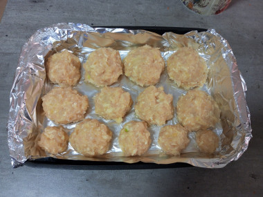 Посыпьте котлеты сверху сыром и поставьте запекаться в духовку, разогретую до 180 градусов примерно 25 минут. Точное время будет зависеть от особенностей вашей духовки. Котлеты должны зазолотиться сверху.