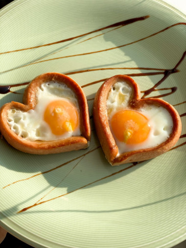 Готовые яичницы-сердечки выкладываем на тарелку и украшаем по своему вкусу и желанию Любите и будьте любимыми!