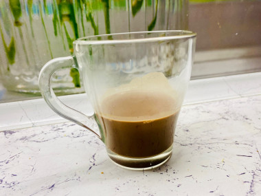 Все делала по инструкции в рецепте. Когда налила молоко, были видны слои, но после добавления горячего кофе слои постепенно начали смешиваться. Но я не расстроилась, т.к. вкус напитка все затмил)