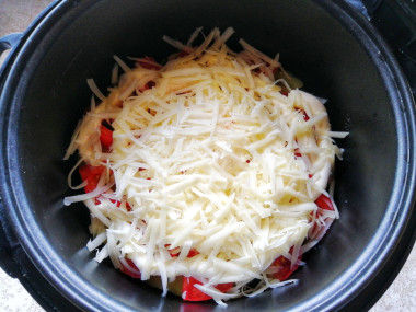 И посыпаем сыром сверху . Ставим чашку в мультиварку и включаем режим Выпечка на 1 час. Время и режим приготовления указаны приблизительно, ориентируйтесь на особенности работы вашей техники. Подробнее об этом читайте в конце этого рецепта.