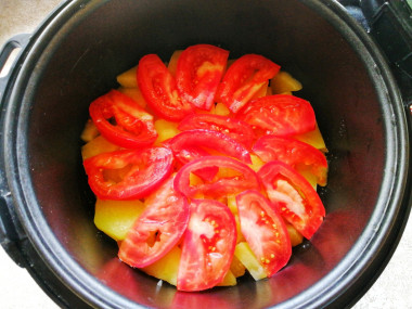 Мясо по-французски с картофелем в мультиварке советую приготовить всем! Вкусно-о очень! И готовить легко. Все ингредиенты я выложила в мультиварку слоями, выбрала режим "выпечка" и оставила на один час.