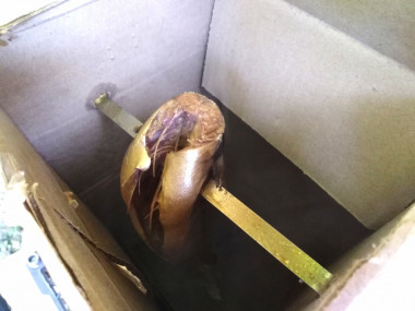 Сначала скумбрию я почистила и засолила, оставив в маринаде по описанию в рецепте на два дня. Потом просушивали скумбрию 4 часа в конструкции из коробки, шампура и марли от котов и мух. И после всего этого начали коптить скумбрию в самодельном устройстве с температурой пара примерно 32-35 градусов. Коптили 8 часов, как пишет автор. Запах стоял сногсшибательный! Не могли дождаться) А после холодного копчения оставили ещё скумбрию под марлей на 4 часа, чтоб равномерно распределился вкус по совету автора.