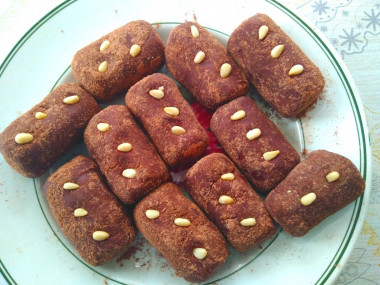 Спасибо за простой рецепт замечательного лакомства. Делала все в точности по Вашим пропорциям в пересчёте на 260 но печенья (такая уж пачка). Превосходно все сформировалось, не жидко, сладость умеренная. Небольшое отступление с посылкой. Сделала смесь пудра+какао+молотый кардамон. Ну люблю я кардамон ))), к тому же он полезен. Украсила кедровым орехом. Результатом довольна, вкус превосходный. Утром с чашечкой кофе самое то! Смело пробуйте рецепт, это просто!