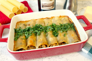 Каннеллони с курицей и грибами под соусом морне