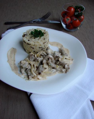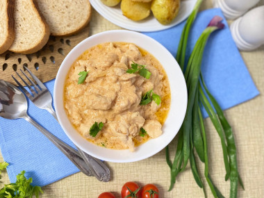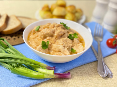 Бефстроганов из куриной грудки со сметаной