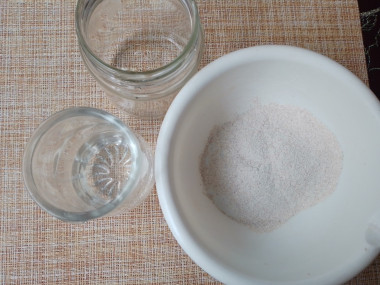 День 1. Надо смешать 150 мл воды и 100 грамм муки до состояния густой сметаны. Вода должна быть чуть-чуть теплая. Емкость для закваски выбирайте стеклянную или пластиковую, большую по размеру, так как она будет расти.