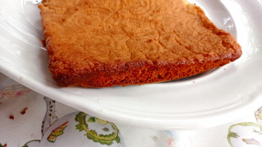 Коржи получились мягкие, хорошо пропеклись, но при этом оставались немного липкими. Из двойного количества ингредиентов получилось пять коржей.