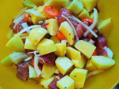 Аппетитное и уверена на все 100 вкусное блюдо, мясо с картошкой во все времена был простой и шикарный обед одновременно, который и гостям не стыдно предложить да и просто отобедать в кругу семьи сытно и вкусно. Спасибо большое за рецепт!