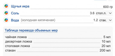 Возможно, одной из причин неудачного результата стали именно пропорции. На сайте в таблице мер (кликабельна ссылка, сразу после ингредиентов) указано, что 1 столовая ложка соли весит 20 граммов. Следовательно, на 600 граммов икры потребуется примерно 3,6 столовых ложки соли, что составляет 72 грамма. Если соли было добавлено больше (а вы упомянули про 90 граммов), это могло привести к пересоленной или слишком плотной икре. Щучья икра очень чувствительна к количеству соли, поэтому даже небольшое отклонение может сильно повлиять на вкус и текстуру.