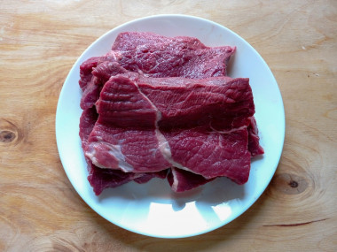 Мясо нарезала тонкими кусочками. На что я сразу обратила внимание – это очень яркий и приятный вкус говядины. Именно говядины, а не просто мяса. Мясо вышло немного жестковатым, но полагаю, что я всё-таки не ту часть говядины выбрала. В остальном я осталась очень довольна.