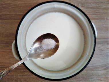 Молоко вскипятите и остудите до 40 градусов. Если взять молоко ультрапастеризованное, то этап с кипячением можно пропустить, вместо этого просто нагрев молоко до нужных 40 градусов.