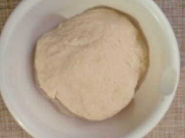 Замесите мягкое эластичное тесто. Накройте пищевой пленкой и оставьте в теплом месте для подъема минут на 50.