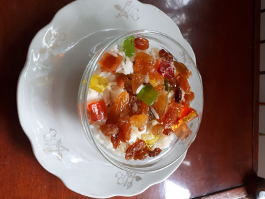 Заправляем кутью карамелизованным изюмом и перемешиваем.