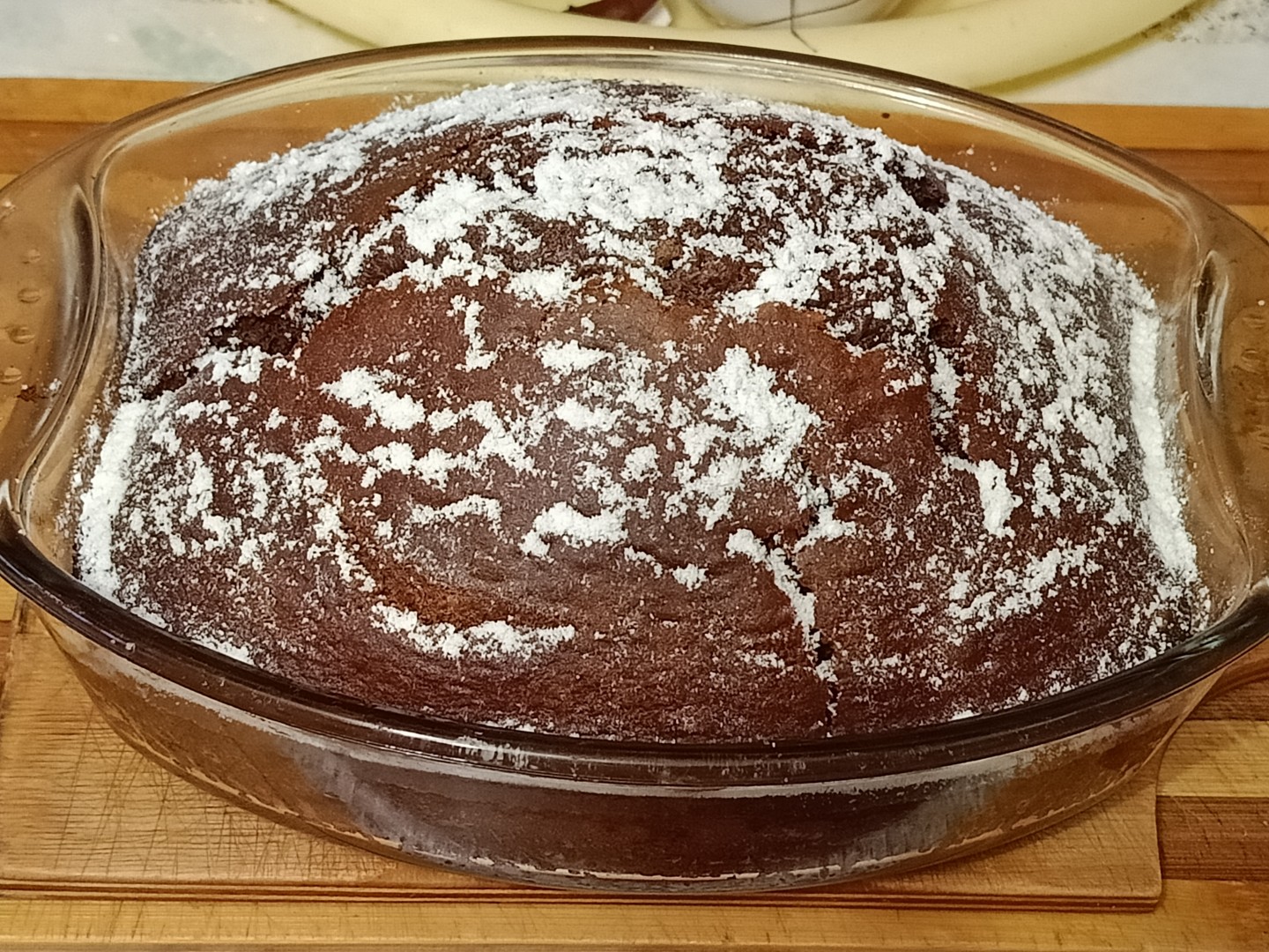 7. Готовую коврижку чуть остудите и посыпьте сахарной пудрой. Подавайте с парой ложек варенья или сметаной.