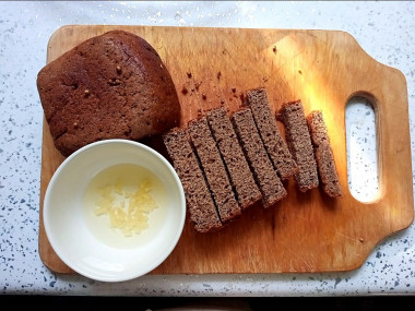 Как сделать гарлики с чесноком? Подготовьте необходимые ингредиенты по списку. Черный хлеб можете брать любой - с дрожжами или бездрожжевой. Подсолнечное масло можно использовать рафинированное без запаха или первого отжима - оно ароматнее. Или заменить оливковым.