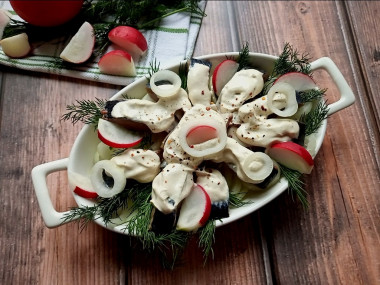 Селедка в горчичном соусе готова, подавайте блюдо к столу. Приятного аппетита!