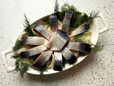 Как сделать селедку в горчичном соусе? Подготовьте продукты. Селедку возьмите малосольную, крепкую и жирную. Вы можете купить ее или засолить самостоятельно.