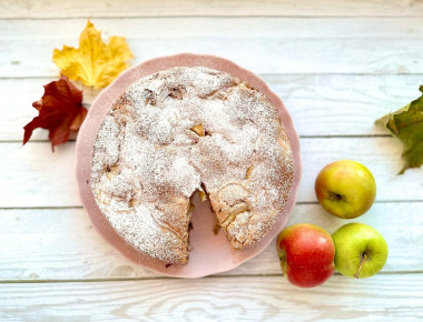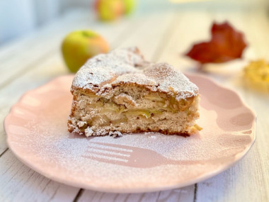 Пирог с яблоками готов - быстро и вкусно! Нарежьте пирог на порционные кусочки и подавайте к столу. Приятного аппетита!