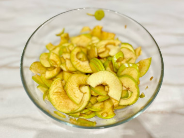 Яблоки помойте, обсушите. Очистите яблоки от семян. Кожицу можно тоже срезать, если она слишком толстая и грубая. Я кожицу не очищала. Нарежьте яблоки средними кубиками.