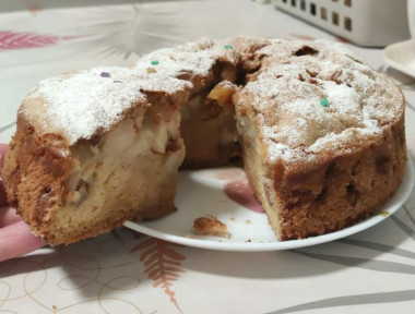 В общем, что хочу сказать! ОЧЕНЬ вкусная получилась, просто хоть гостям подавай, несмотря на простоту. И пропеклась хорошо, и поднялась, и яблоки равномерно внутри распределились (обычно у меня на дно оседают).